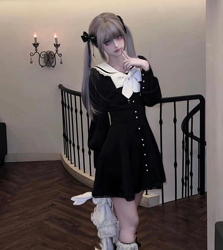 このドレスはゴシックやダークな量産型、地雷系ファッションを好む方に最適なアイテムです❕上品なレースのディテールと、エレガントなブラックカラーが魅力的でスカート部分のふんわりしたボリューム感が、あなたの動きを美しく引き立てます❕