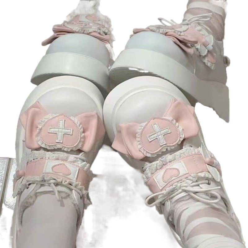この病みかわシューズは、個性を大切にするあなたにぴったりのアイテムです❕ 絆創膏モチーフが病みかわいさを引き立て、丸頭×厚底のデザインが甘さと医療系サブカル感を絶妙に融合しています✨ 特別な日にも、日常使いにも、あなたのスタイルをより一層引き立てます♡