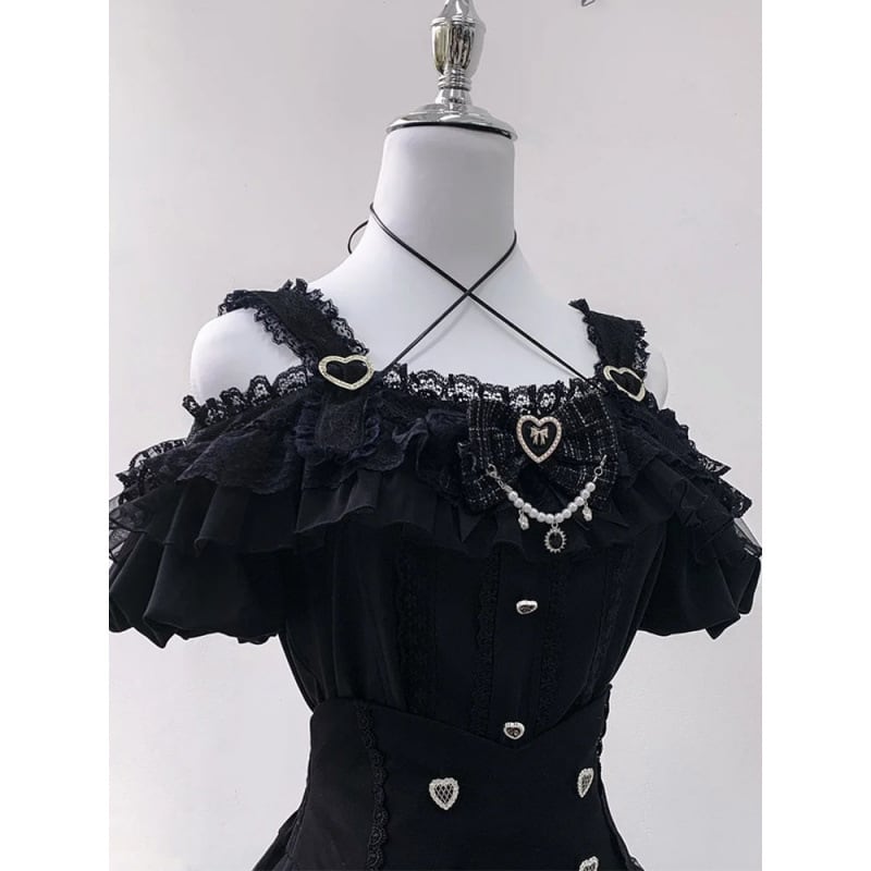 この夏ブラック♡レースリボンボタントップ&ショートスカートは、夏のコーディネートにぴったりのスタイリッシュな一揃いです❕ ブラックのレースとリボンの組み合わせが甘さ控えめで、地雷系・量産型どちらも楽しめる魅力的なデザインです✨ 肩出しのトップスは涼しさをプラスし、特別な日のコーディネートや普段使いにも最適です♡