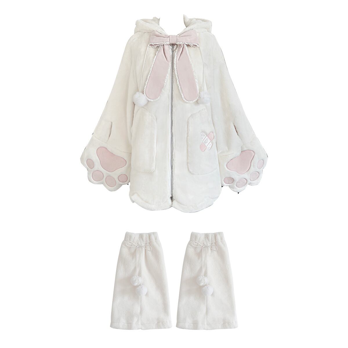この甘かわ♡もこもこ主役アウターは、冬のおしゃれに欠かせない暖かさと個性的なデザインを兼ね備えた一着です❕ もこもこ素材が心地よい着心地を提供し、フードやお袖のデザインがコーディネートのポイントを演出します✨ アウターとレッグウォーマーがセットになっているので、さらに防寒力もアップ。寒い季節のお出かけやデイリーユースに大活躍間違いなしです♡