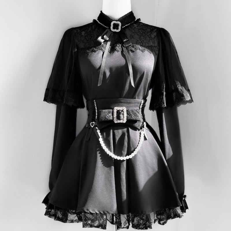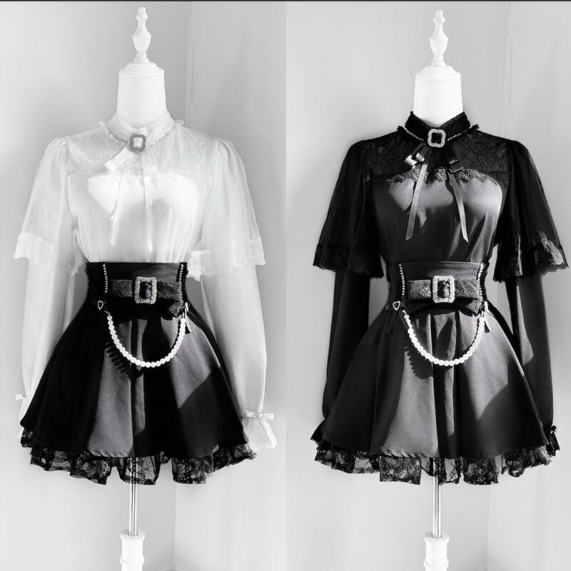 このダークレース♡リボン量産ミニスカートは、スタイリッシュで可愛らしさを両立させた魅力的な一着です❕ ダークレースとリボンが施されたデザインは目を引き、ハイウエストシルエットが脚長効果を発揮します✨ ボタンデザインも見逃せないポイントで、エレガントさとカジュアルさを兼ね備えたデザインが特徴です。セットのブラウスと合わせて、統一感のある量産コーデを楽しんでください。特別なイベントや普段のコーディネートにもピッタリなアイテムです♡