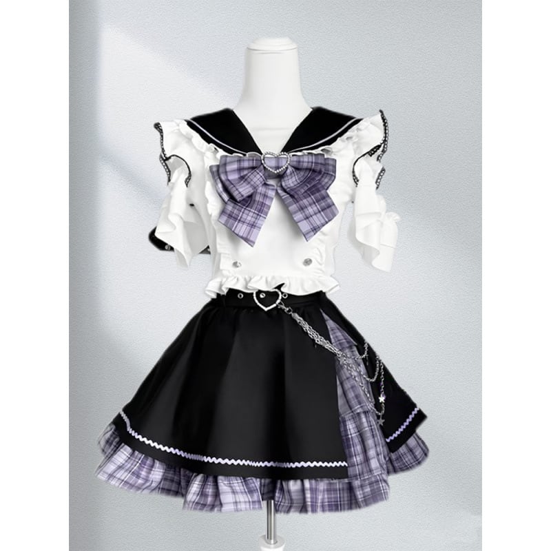 このセーラー風♡リボンセットアップは、可愛らしさと個性を見事に融合させた一着です❕ セーラー服風デザインが特徴的なリボンステッチトップと、ふんわり広がるスカートの2点セットで、紫カラーがガーリーさを引き立てます✨ 夏のコーディネートにもぴったりな軽やかなスタイルで、活発な日常に彩りを添えてくれるアイテムです♡