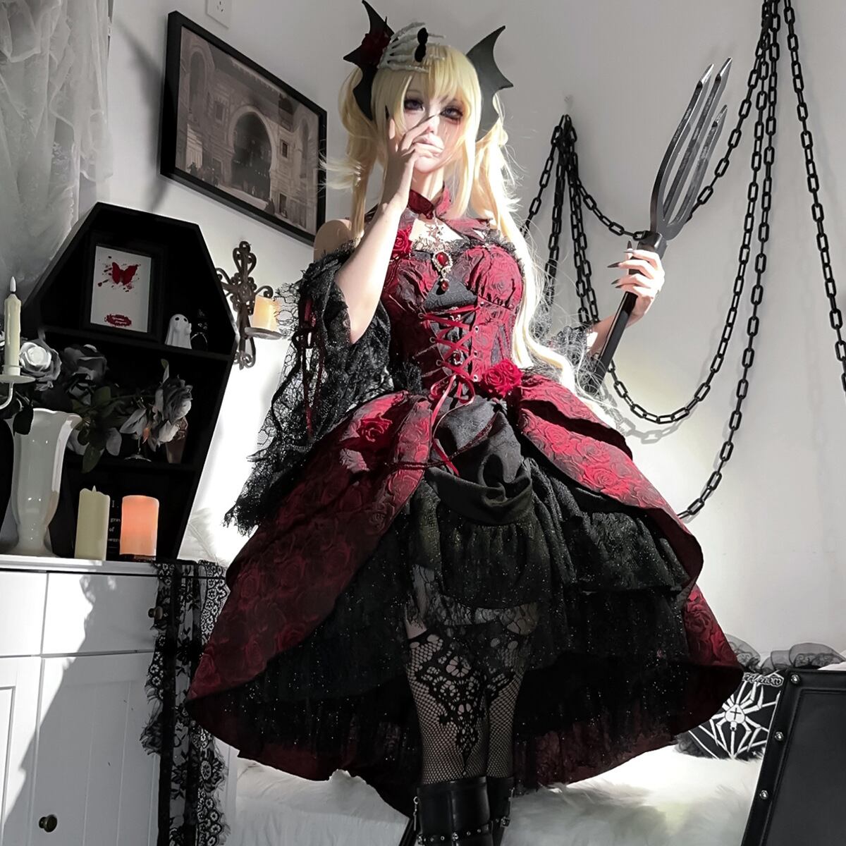 この薔薇血ロリータ♡サスペンダースカートドレスは、甘さとダークな雰囲気を絶妙に融合させた魅力的な一着です❕ 浮かび上がる薔薇のモチーフが、セクシーさと可愛らしさを兼ね備えたスタイルを演出します✨ あなたの日常に不足しがちな退廃的なエッセンスを添え、上品にコーディネートできるデザインが魅力です。特別な日にも、普段使いにも活躍するアイテムです♡